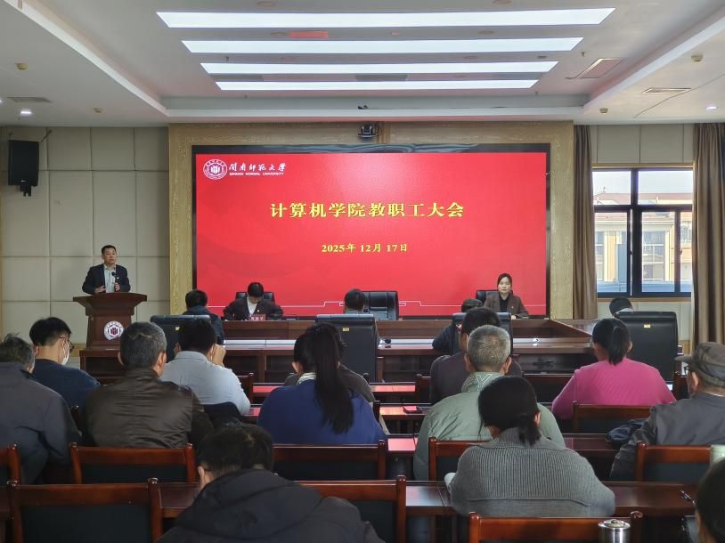 在科技楼1607报告厅召开教职工大会,会议由学院党委副书记、工会主席陈小玲主持。