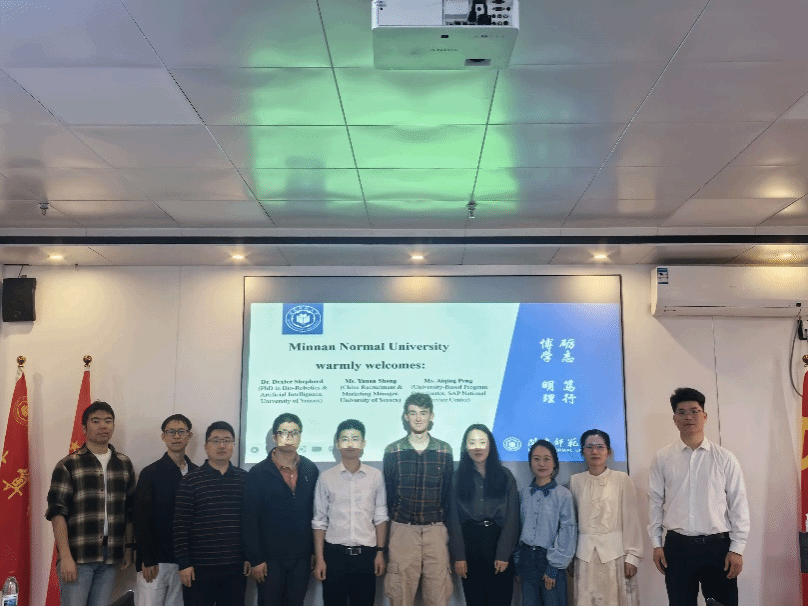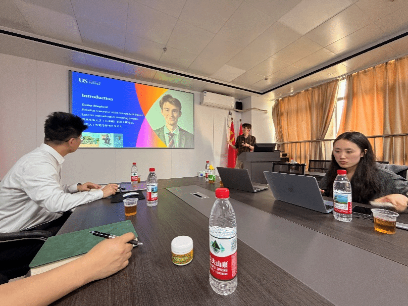 多位教研室主任、教授和青年教师到场参与交流。Dexter Shepherd介绍了萨塞克斯大学人工智能研究机构的三大研究领域,详细介绍了生物启发机器人设计的一种研究模式。随后,马碧阳老师向来访学者详细介绍换妻